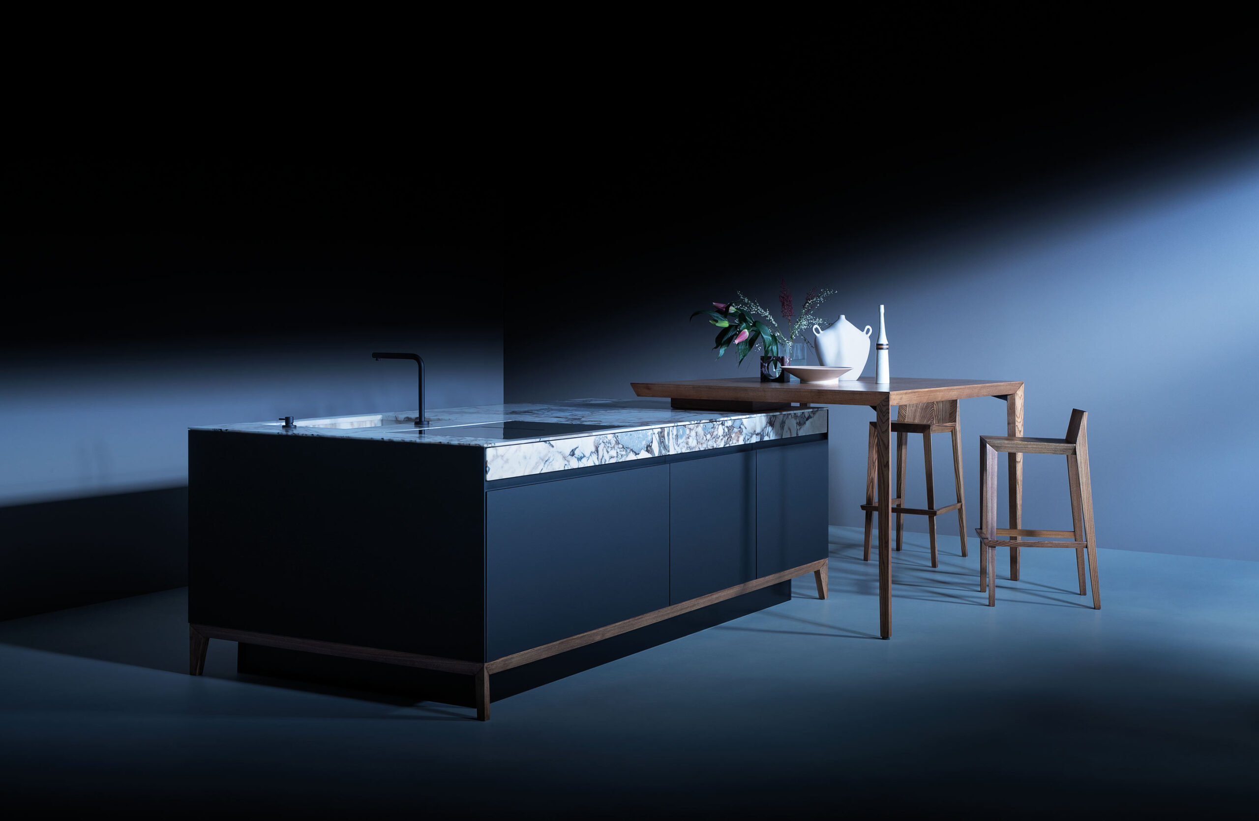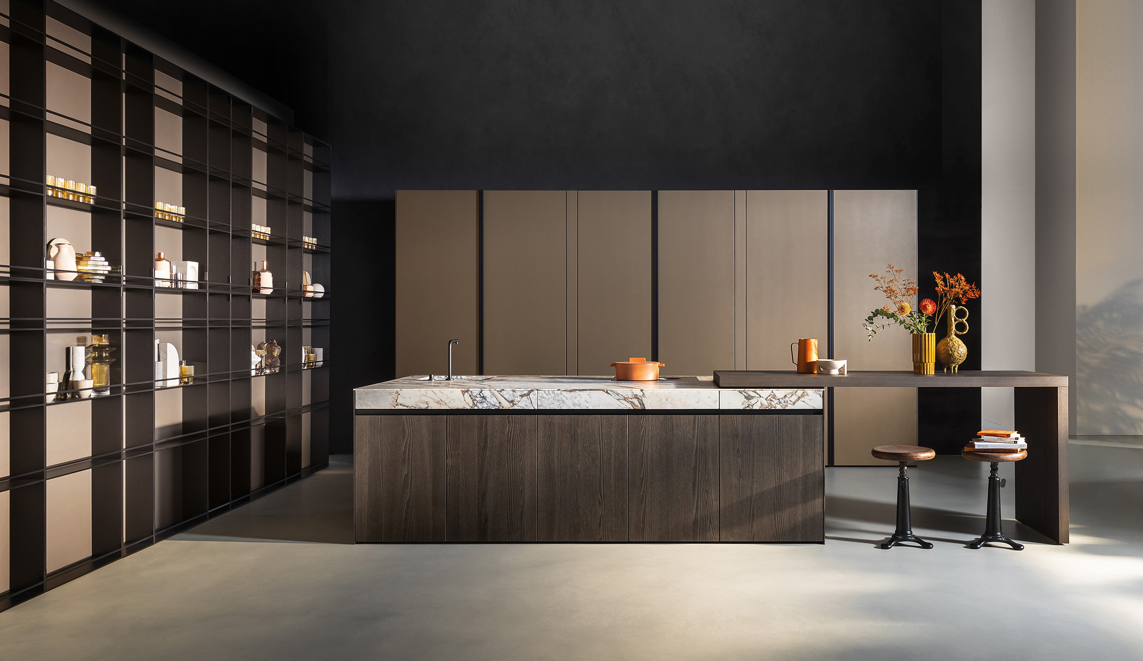 SEI is Euromobil’s solution for those who desire a kitchen with both warmth and modular adaptability. It often combines wood veneers, lacquered surfaces, and glass elements to mediate between hard and soft materials. The SEI system is designed to integrate seamlessly into open-plan living, with clean sightlines and choices of finishes that allow blending or contrast. Its versatility makes it suitable for a wide range of aesthetic directions, from warm contemporary to minimalist elegance.
